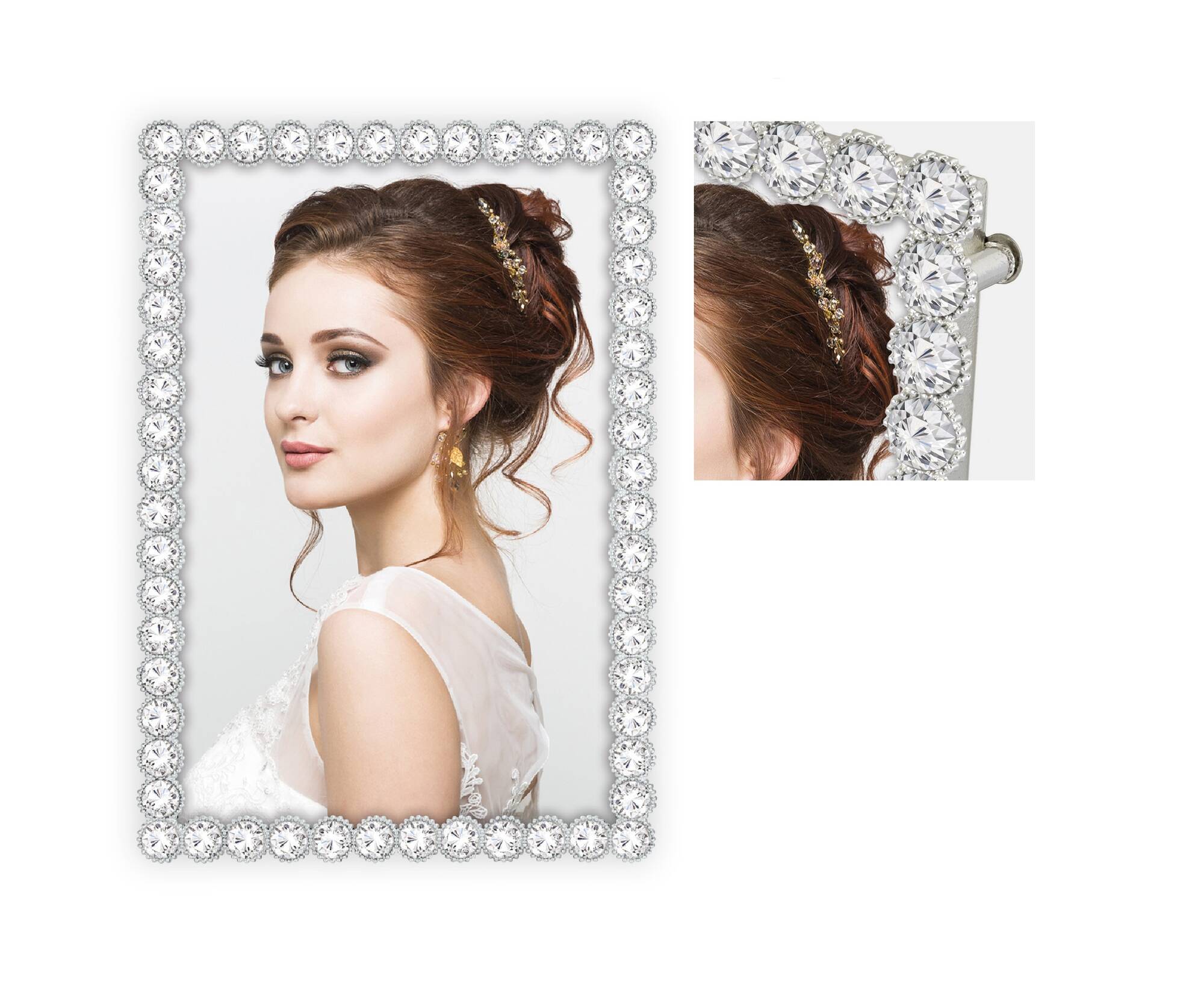 Tyylikäs, lasitimantein koristeltu metallikehys.