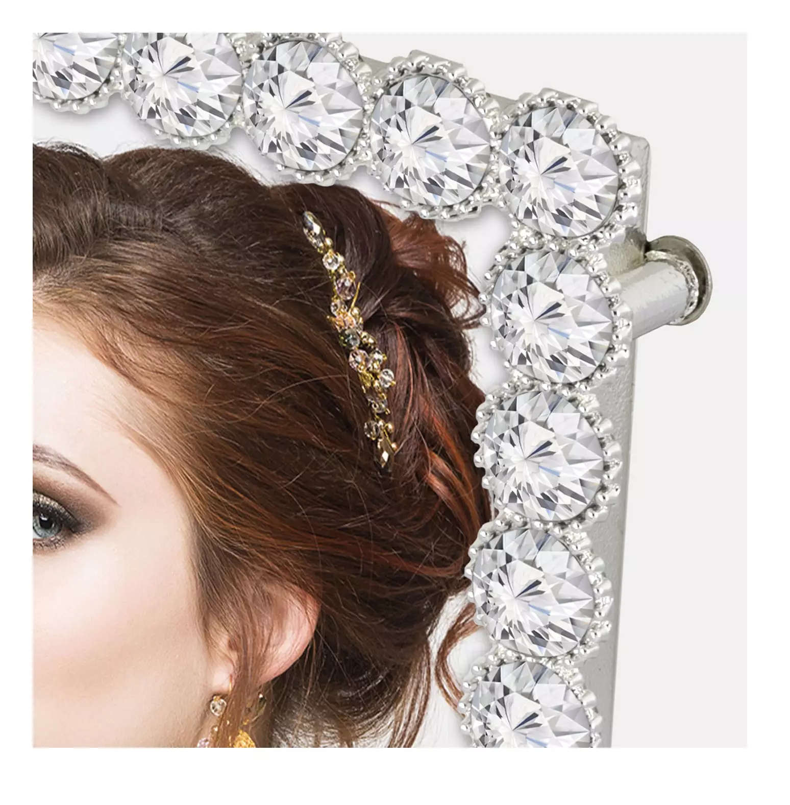 Tyylikäs, lasitimantein koristeltu metallikehys.