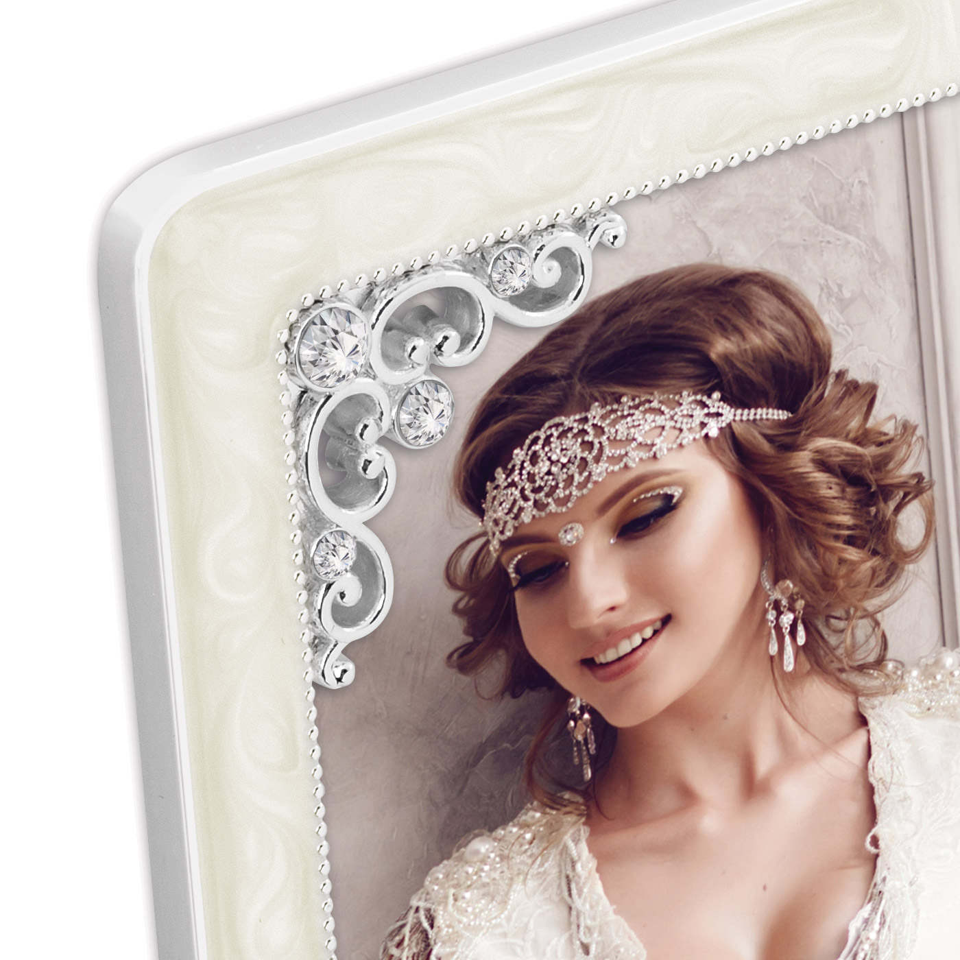 Tyylikäs, lasitimantein koristeltu metallikehys. Näyttävä helmiprofiili ja samettitausta viimeistelee kehystä. Sopii hyvin juhakuville ja lahjaksi. Kuvakoko 10x15 Ulkomitta 16,5x11,5cm.... Lue lisää