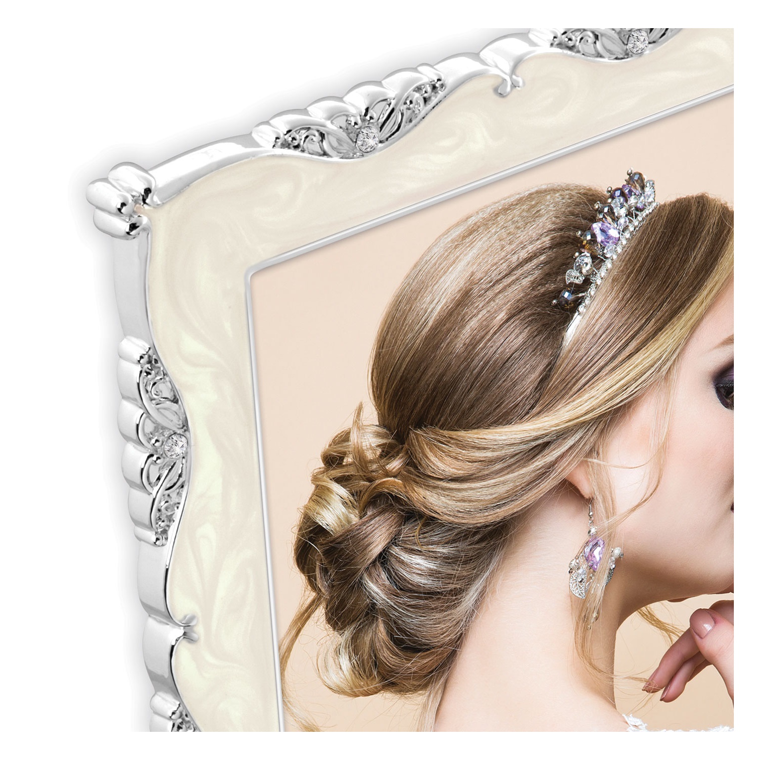 Tyylikäs, lasitimantein koristeltu metallikehys. Näyttävä helmiprofiili ja samettitausta viimeistelee kehystä. Sopii hyvin juhakuville ja lahjaksi. - Kuvakoko 10x15 - Ulkomitta 16,5x11,5cm. -... Lue lisää