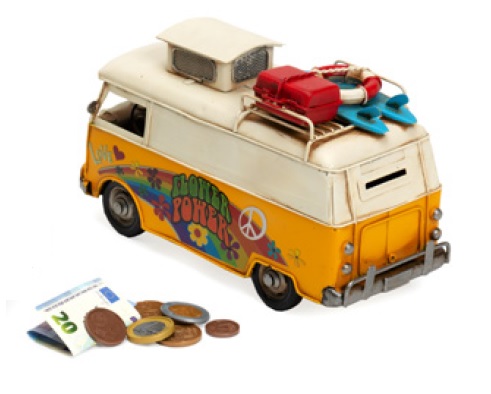 Metallinen legendaarinen Flower Power koristepakettiauto jossa säästölipa
