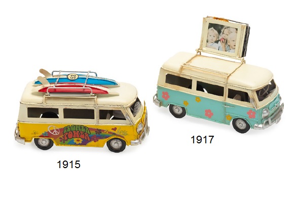 Metallinen legendaarinen Flower Power koristepakettiauto jossa paikka - valokuvalle - tekstille Koko n.: 16,5x7,5x9,5 cm