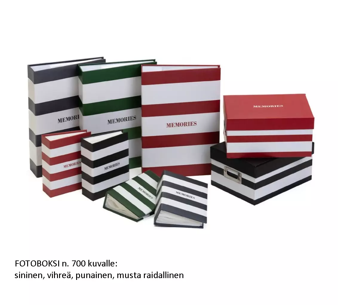 Tyylikäs Apart Memories fotoboksi - 700:lle 10x15 kuvalle - metallinen lapputeline Myydään 4:n kpl lajitelmana