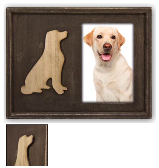 Koira-aiheinen puukehys. - koristeella Kuvan koko 10x15
