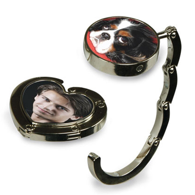 Metallinen laukkupidike painettavalla laatalla Laatan pinta kauniin helmiäinen Pyöreän muotoinen Ø 32 mm