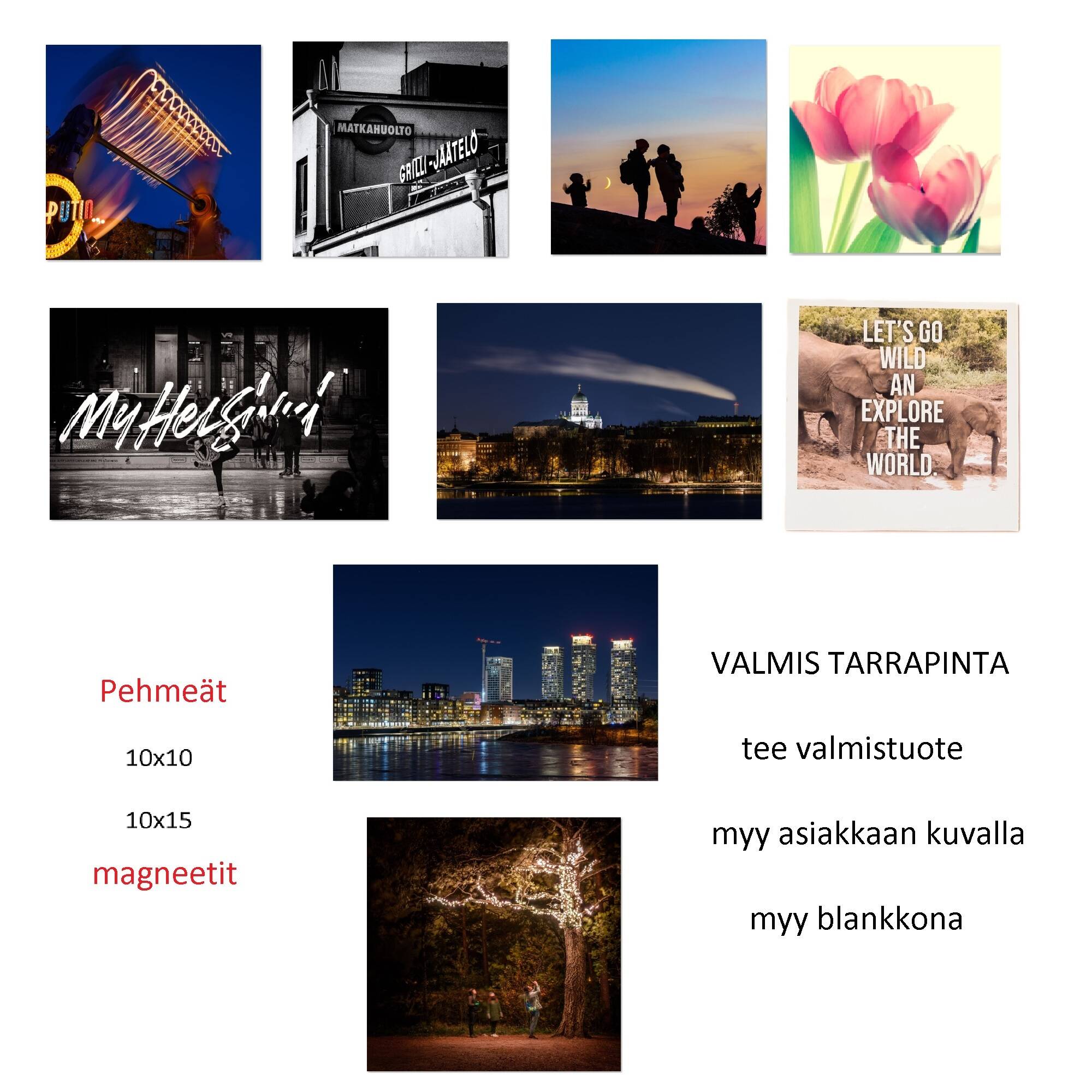 SUOSITUT PEHMEÄT MAGNEETIT voit nyt - tehdä valmiiksi sloganilla, kuvalla, kuva + tekstillä - myy asiakkaan kuvilla - myy blankkona ja asiakas laitta itse haluamansa kuvan IDEOITA JA VINKKEJÄ -... Lue lisää