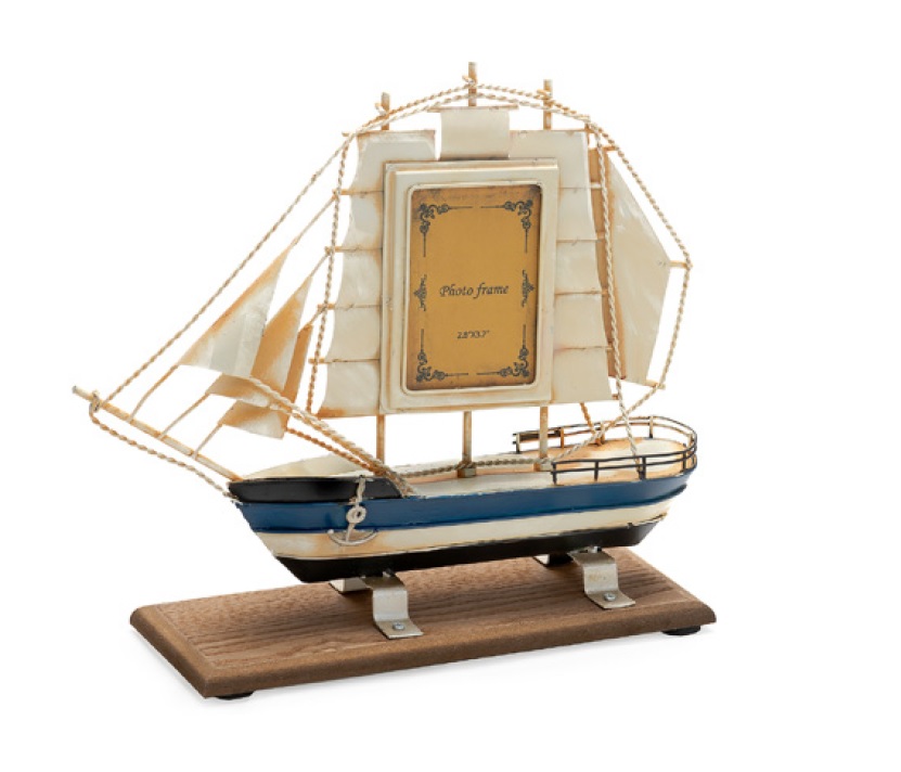 Metallinen koriste purjelaiva jalustalla Koko 27,5x10x14,5cm Purjeessa paikka n. 7,1x9,4cm kuvalle