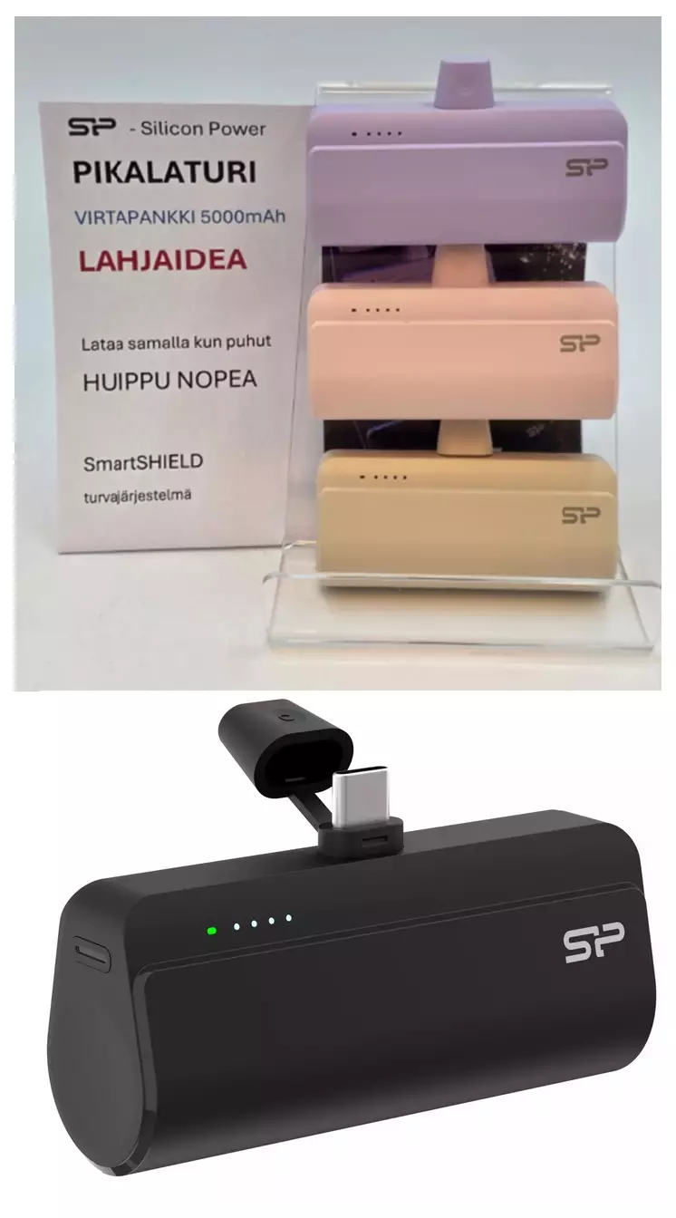 Minilaturissa on tehokas 5000 mAh:n akku, jolla saat yhden täyden latauksen iPhone 15 Pro- tai Galaxy S23 Ultra -puhelimelle.