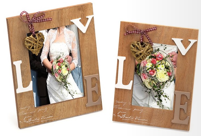 Ihastuttava puukehys jossa - kohokirjaimet - sydän riipus