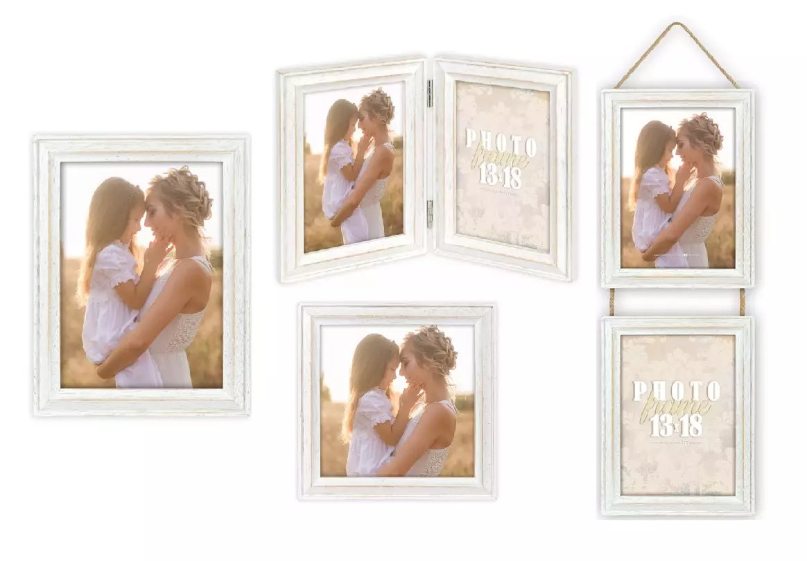 ROSEL valkoinen 2x 10x15 Vintage ripustettava puukehys