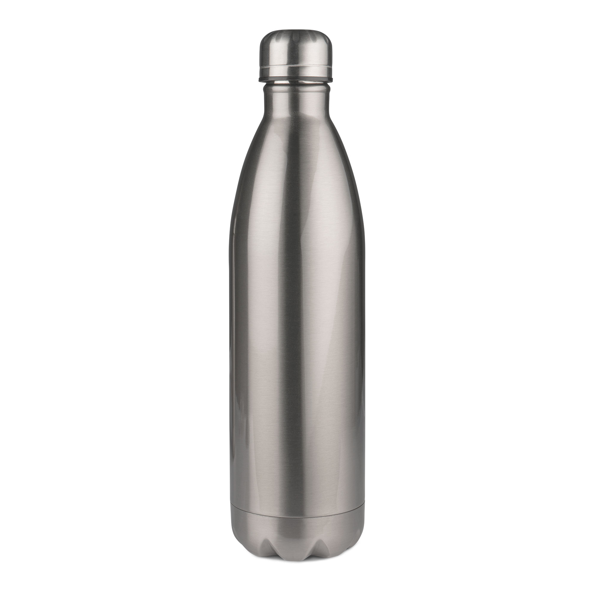 Upea, trendikäs lahja - Teräksenvärinen pullon muotoinen termospullo jossa pohja ja korkki ovat kaikki teräksen värisiä. Iso 750 ml Kestävä teräspullo tiiviillä kierrekorkilla.... Lue lisää