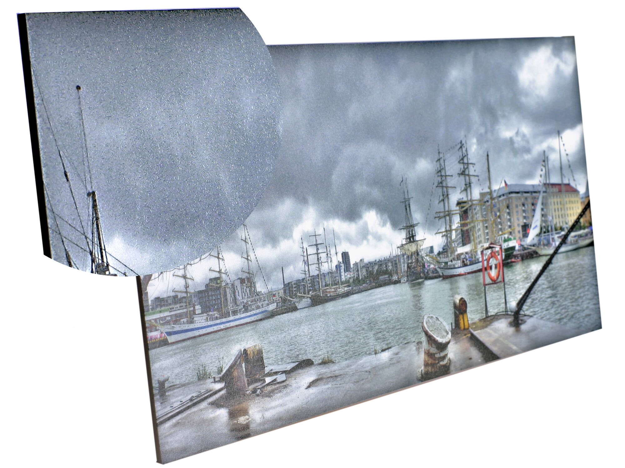 Hiekka- laminointikalvo suojaa kuvaa naarmuuntumiselta kun sitä käsitellään, kosketaan ja siiretään.