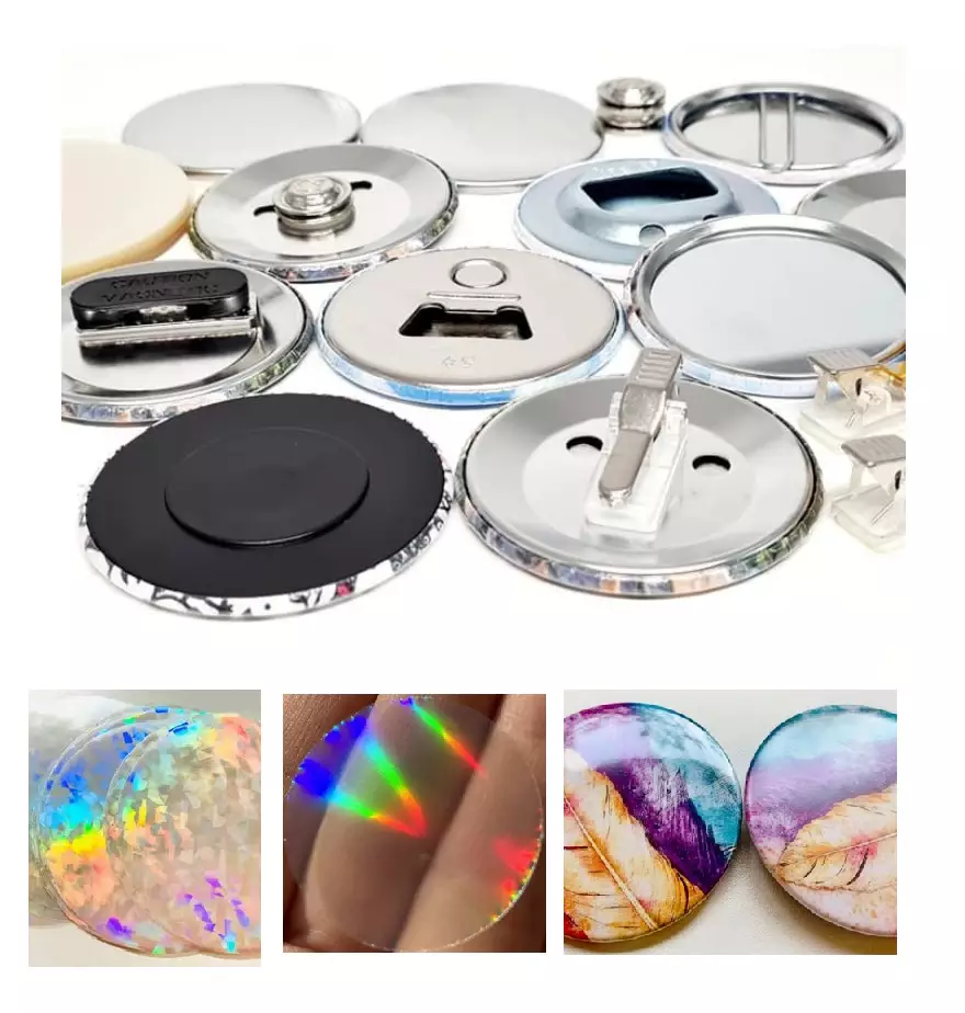 Kokeilupaketti yli 160 rintamerkkiaihiota 38 mm: 20x hakaneulalla 20x jääkaappimagneettia 20x pullonavaajia (10x magneetilla ja 10x 2 reikämallia) 20x peiliä 20x Croco-klipsia 20x lukkoklipsia 20... Lue lisää