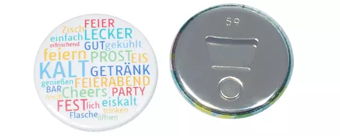 Laadukas rintanappipohja jossa tausta on pullonavajaa, magneetilla.