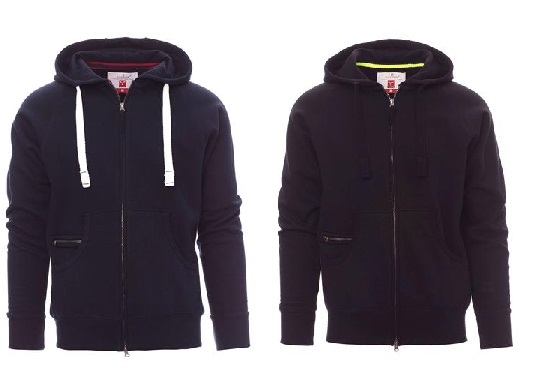 Materiaali: 70% puuvilla, 30% polyesteri Paino: 300g/m² Koot: S-3XL Vetoketjutasku edessä Valkoiset / mustat leveät kiristinnyörit hupussa Raglan hihat