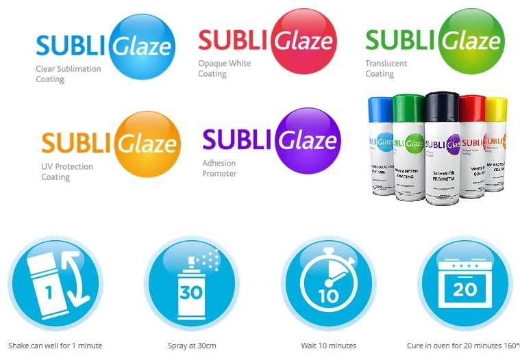 Apply Subli Glaze™ Clear Sublimation Coating smoothly and evenly, holding the can approx. 250mm (10?) from surface using light passes at room