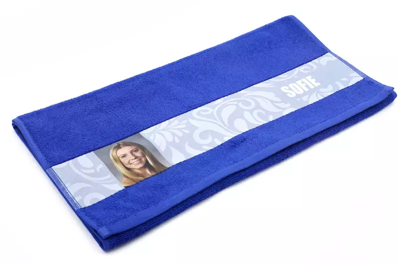 Pehmeä puuvillapyyhe, jossa painettava polyesterinauha