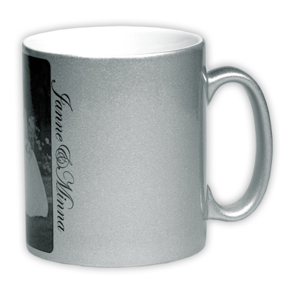 Hopean värinen muki Kimalteleva pinta ja valkoinen sisus Ø 81 mm, korkeus 94 mm Paino 340 g Painoala 85 x 200 mm Konepesua ei suositella!
