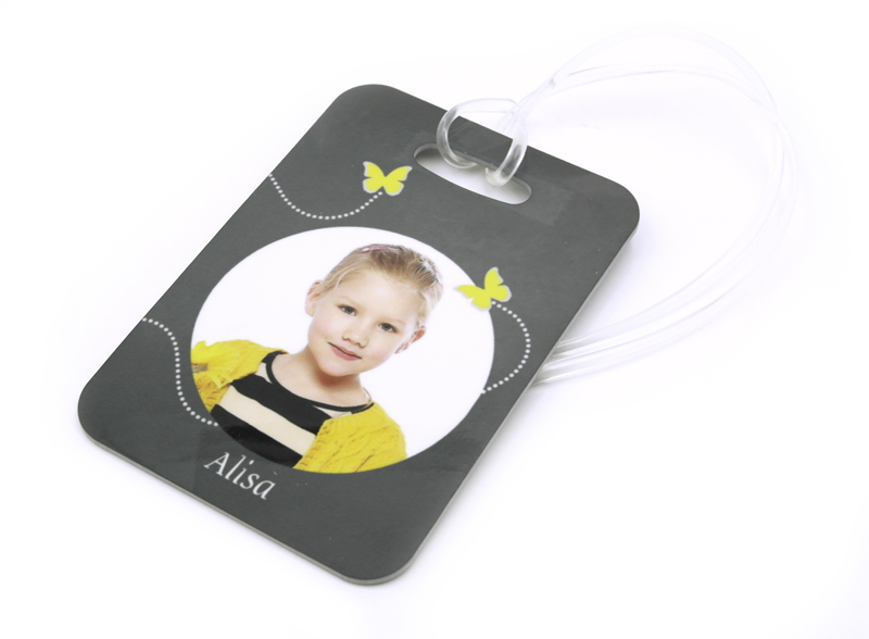 Iso muovinen laukunmerkki Molemmin puolin painettava