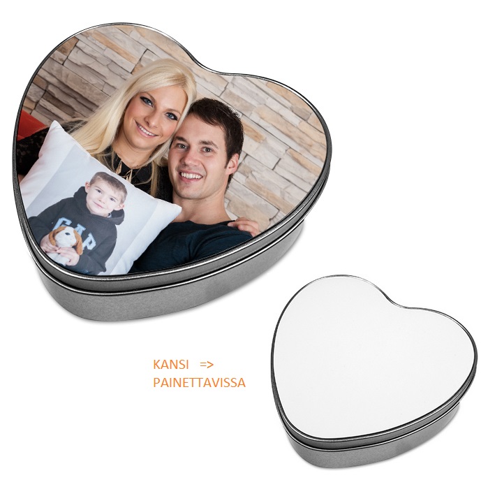 Upea lahjarasia - Metalli, hopean värinen lahjarasia jossa sublimoitava kansilevy. Kansilevy on irrallaan, joten sen on helppo sublimoida ja tämän jälkeen asentaa metallirasian kanteen. Kansilevy... Lue lisää