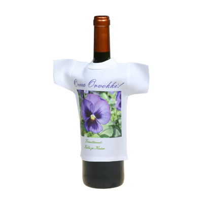 Tuliaiseksi yksilöitävä lahja t-paita esim. - mehupullolle - viininpullolle Valkoinen koristepaita 100% polyesteriä Mitat n. 185 x 160 mm Lahjapullon päälle tai ripustimella esim. ikkunaan Huom!... Lue lisää