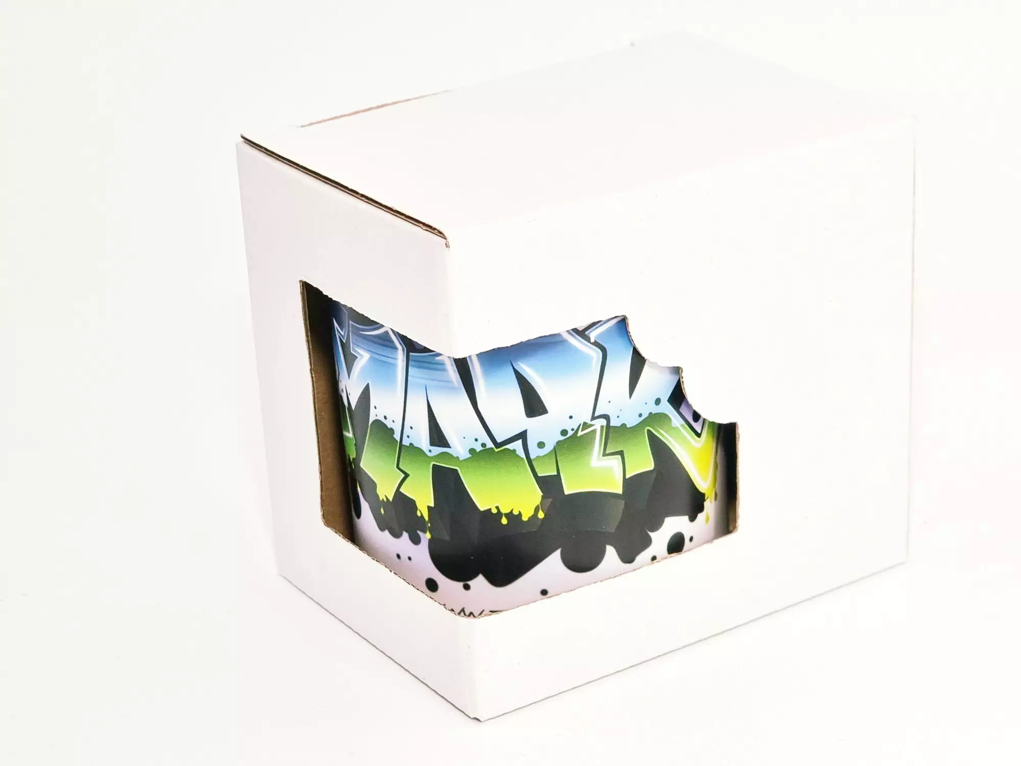 Mattavalkoinen kartonkilaatikko ikkunalla Myyntierä 25 kpl nipuissa Yhteensopiva mm normaali mukit , kaksiväriset mukit, lasimukit. Koko: 115x100x85mm Napakka istuvuus tavalliselle mukille.... Lue lisää