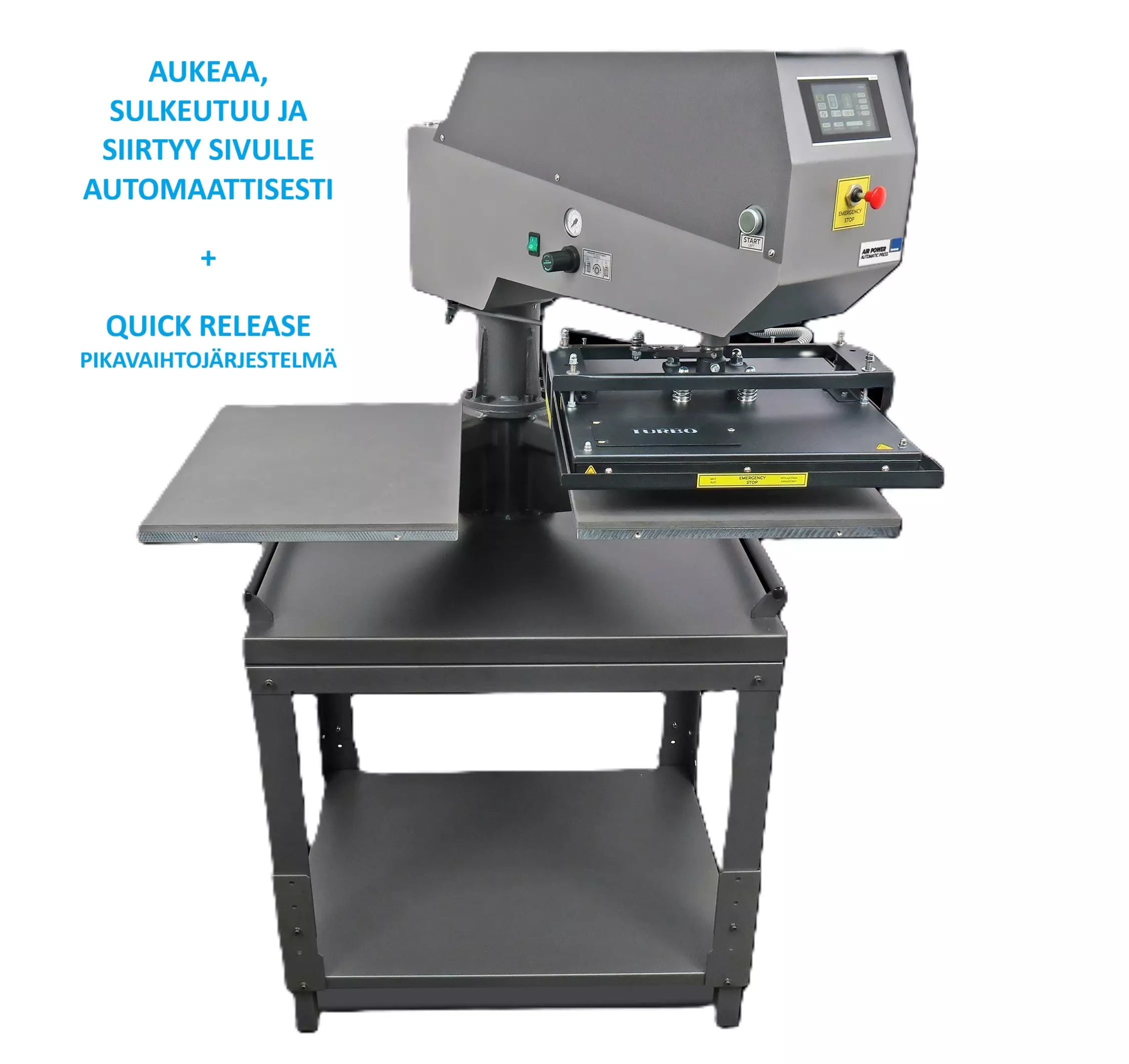 Schulze Air Power Automatic prässi on itsestään aukeava paineilmatoiminen lämpöprässi kahdella tasolla