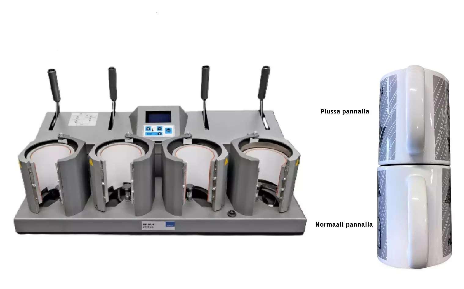 MUG 4 prässin voit myös tilata haluamillasi pannoilla. Vakio panta on 80mm.