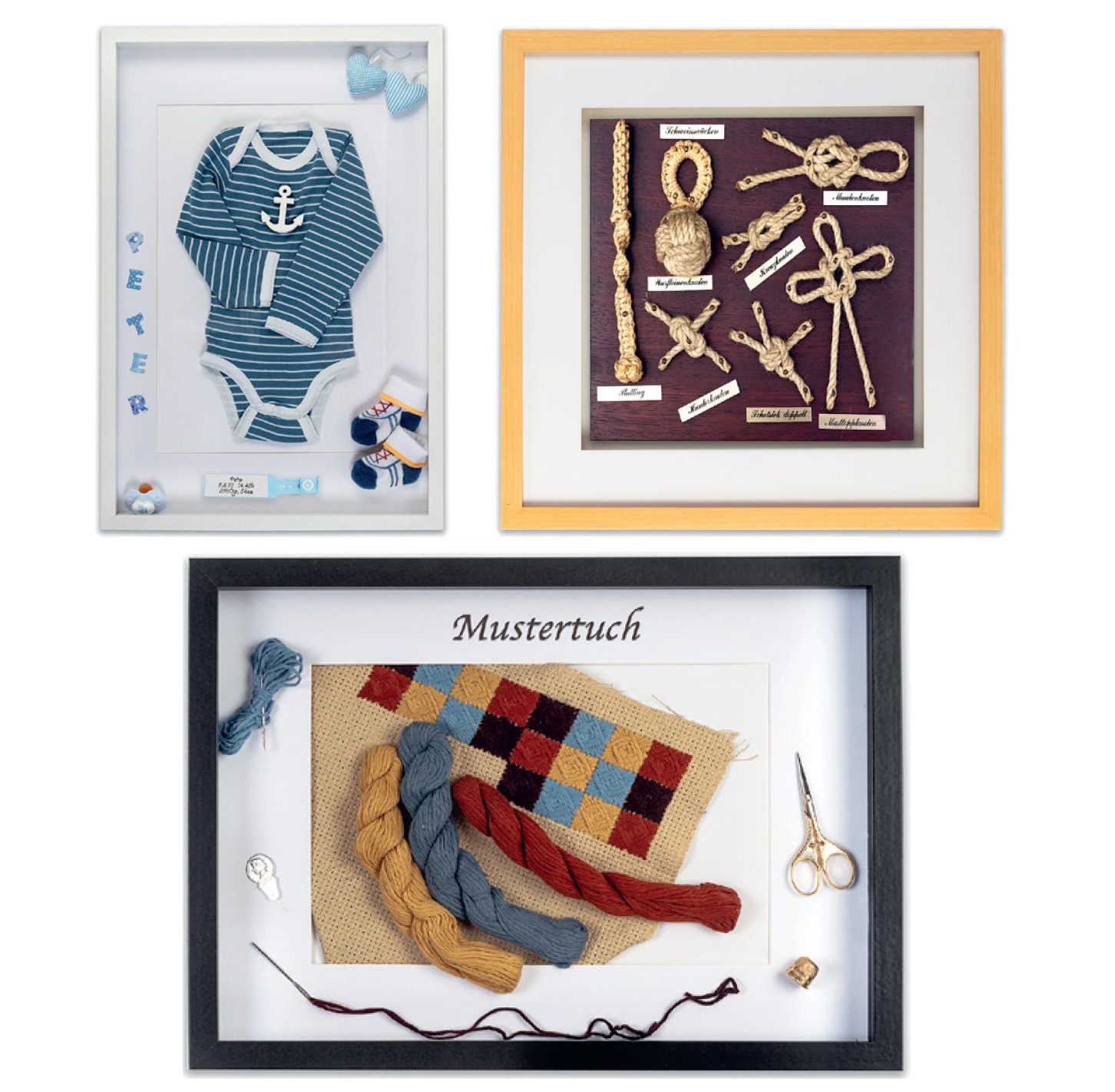 Tilakehykseen voi myös lasin ja taustaan asettaa tuotteita, esim. paidan, vauvan vaatteita, solmuja...