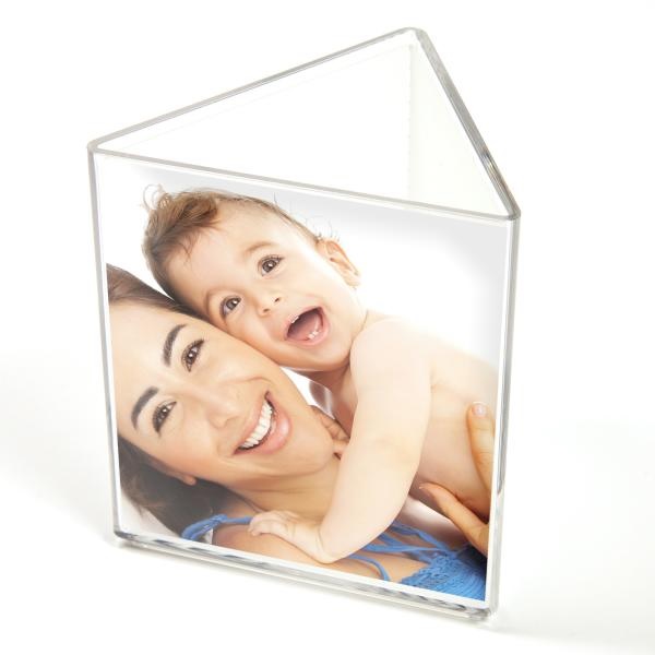 Kolmiomuotoinen akryyli kynäteline pöydälle - mainoksille - omille kuville Tyylikäs pöydälle. Yhden sivun koko: 91mm korkea, 84mm pitkä