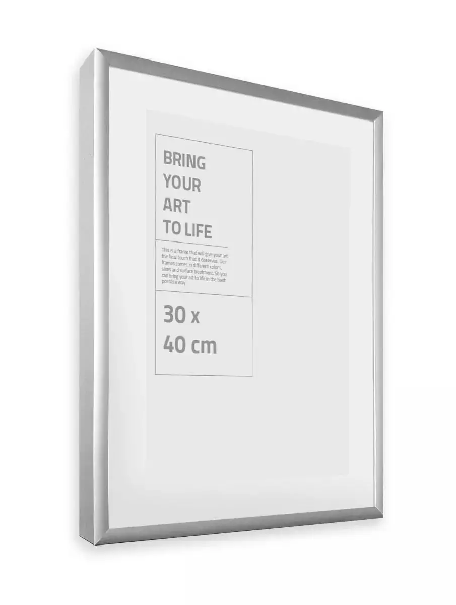 Klassinen matta hopea alumiinikehys pleksilasilla. Kehyksessä on kirkas pleksilasi. Pleksi on kevyt ja minimoi rikkoutumisriskin. Tämän ansiota kehys sopii hyvin verkkokauppamyyntiin ja kun... Lue lisää