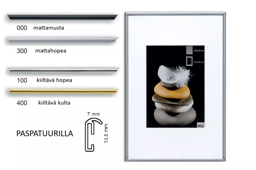 Alumiinikehys AL-62 30x40 / 20x28 mattahopea