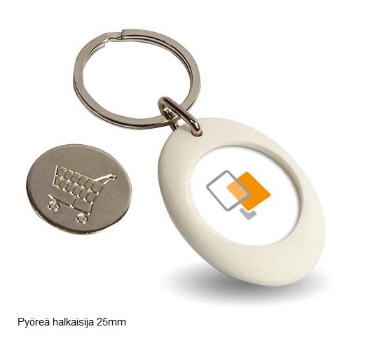 Laadukas valkoinen avaimenperä ostoskärrypoletilla.