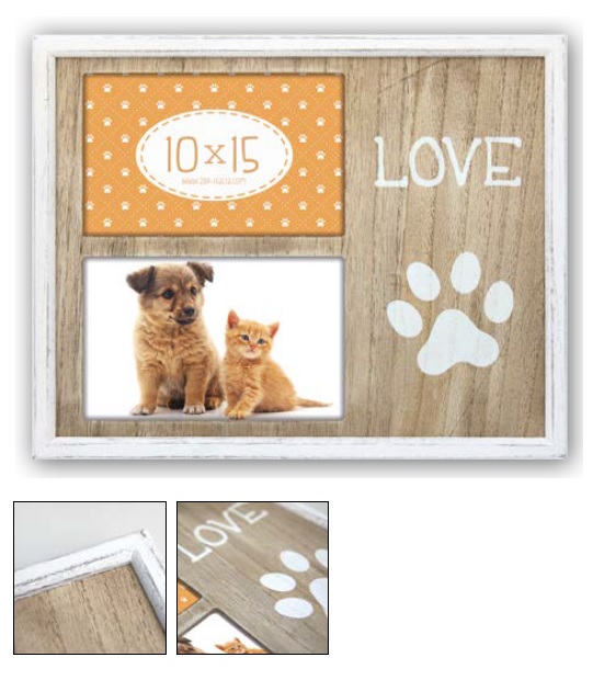 Love - lemmikille - 2:lle 10x15 kuvalle ja - tassunjälki Kehyksen ulkomitta on 29x24cm Puukehys