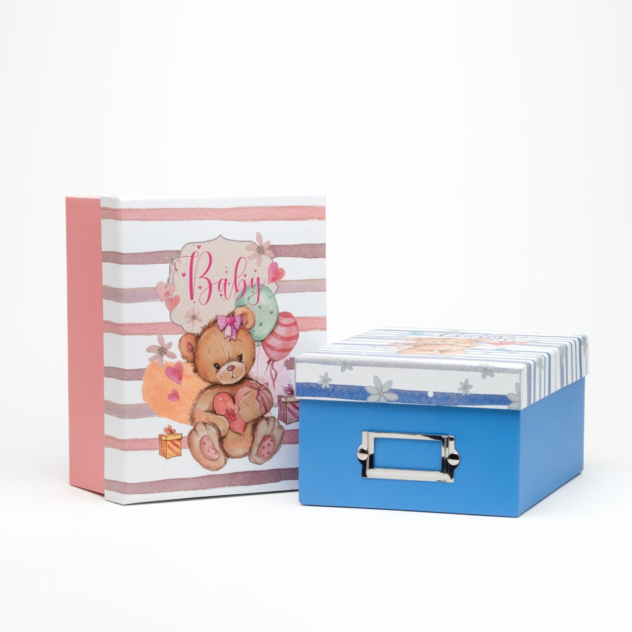 Tyylikäs raikas fotoboksi lastenhuoneeseen, lahjaksi, säilytyslaatikoksi.