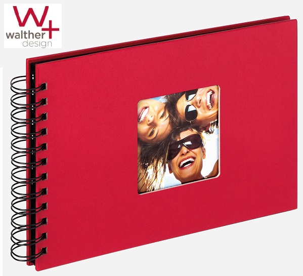 Tyylikäs punainen albumi, kierrekiinnityksellä.