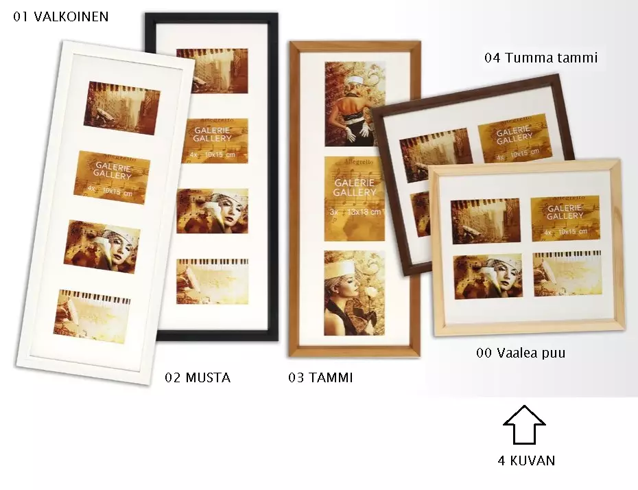 Aidosta puusta valmistettu galleriakehys 4:lle 15x10 valokuvalle, 2+2 kuvaa.