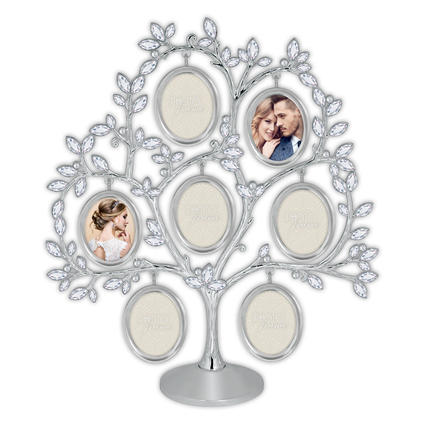Metallinen koristeltu sukupuukehys 7:lle kuvalle.