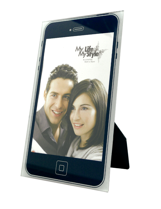 Trendikäs kännykkä smartphone kuvakehys. Sopii myös liikkeisiin kertomaan, että puhelimen kuvista saa teetettyä myös valokuvat. Akryyli, muovikehys. Kuvakoko 10x15. Seisontatuki... Lue lisää