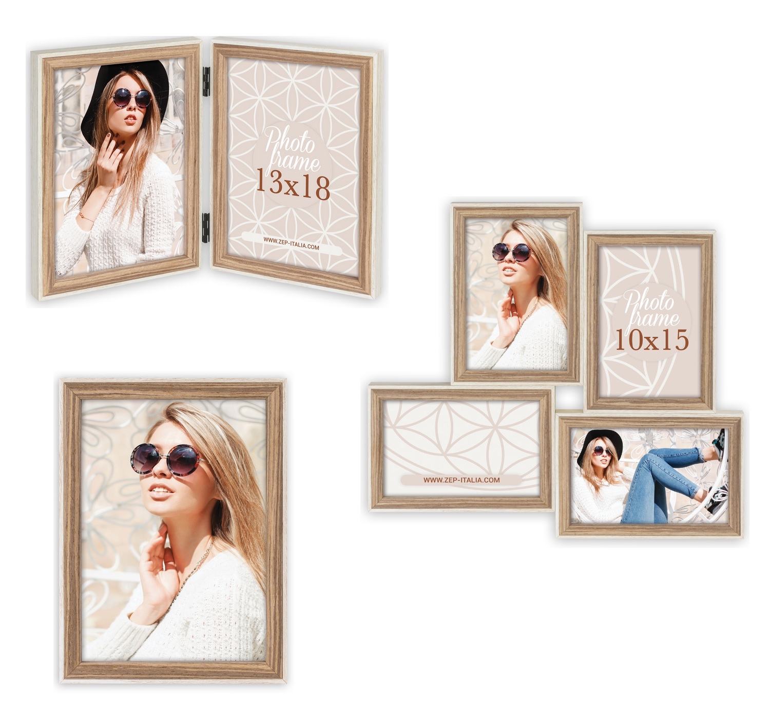 Yksittäiset ja saranamallit pöydälle. Monikuvakehys seinälle.