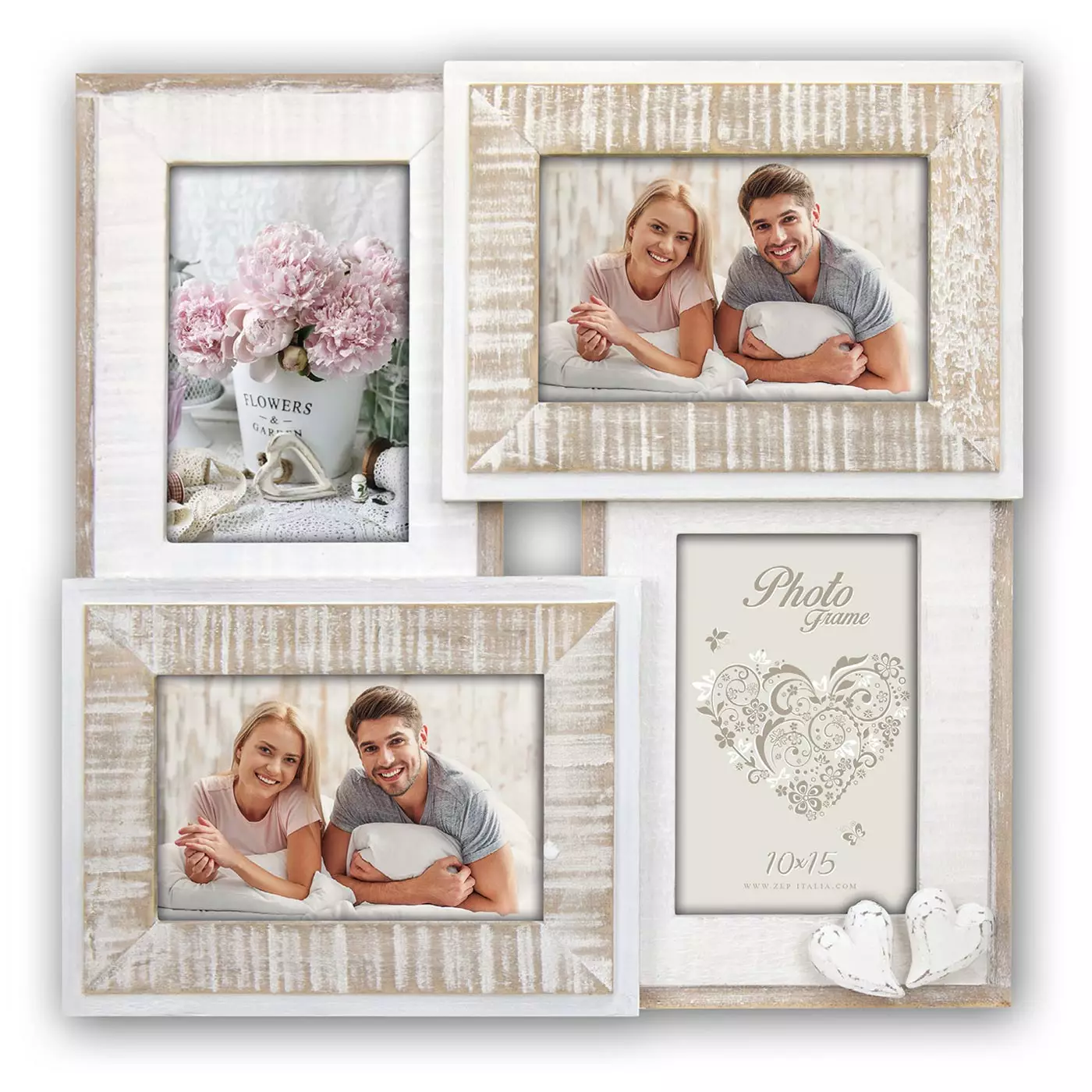 Vintage henkinen puukehys sydän koristeilla. Neljä kehystä aseteltu osittain päällekkäin. Kotiin, lahjaksi. Kuvakoko 4x 10x15 Kehyksen paksuus 2,5cm Ulkomitta n. 35x35cm Listan leveysn. 3,5cm... Lue lisää