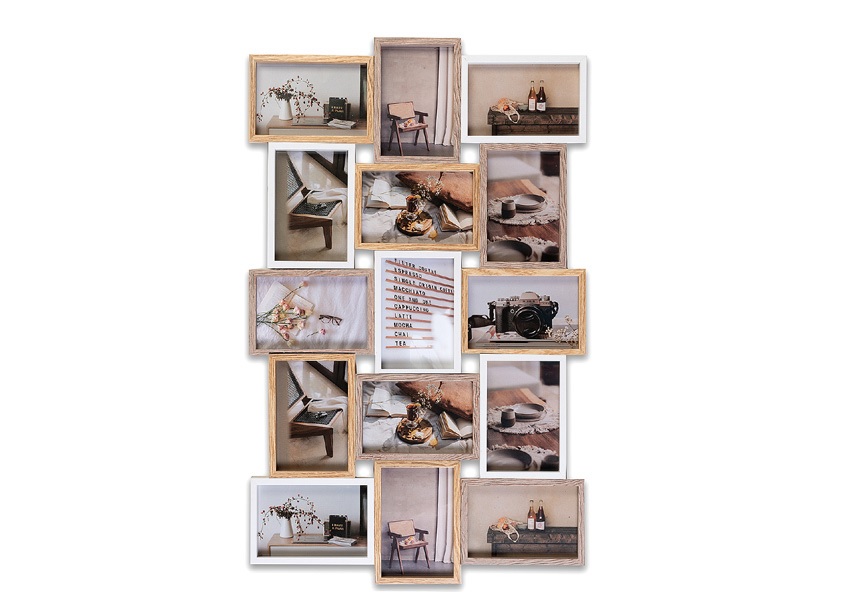 Tyylikäs monikuvakehys 15:sta 10x15 valokuvalle