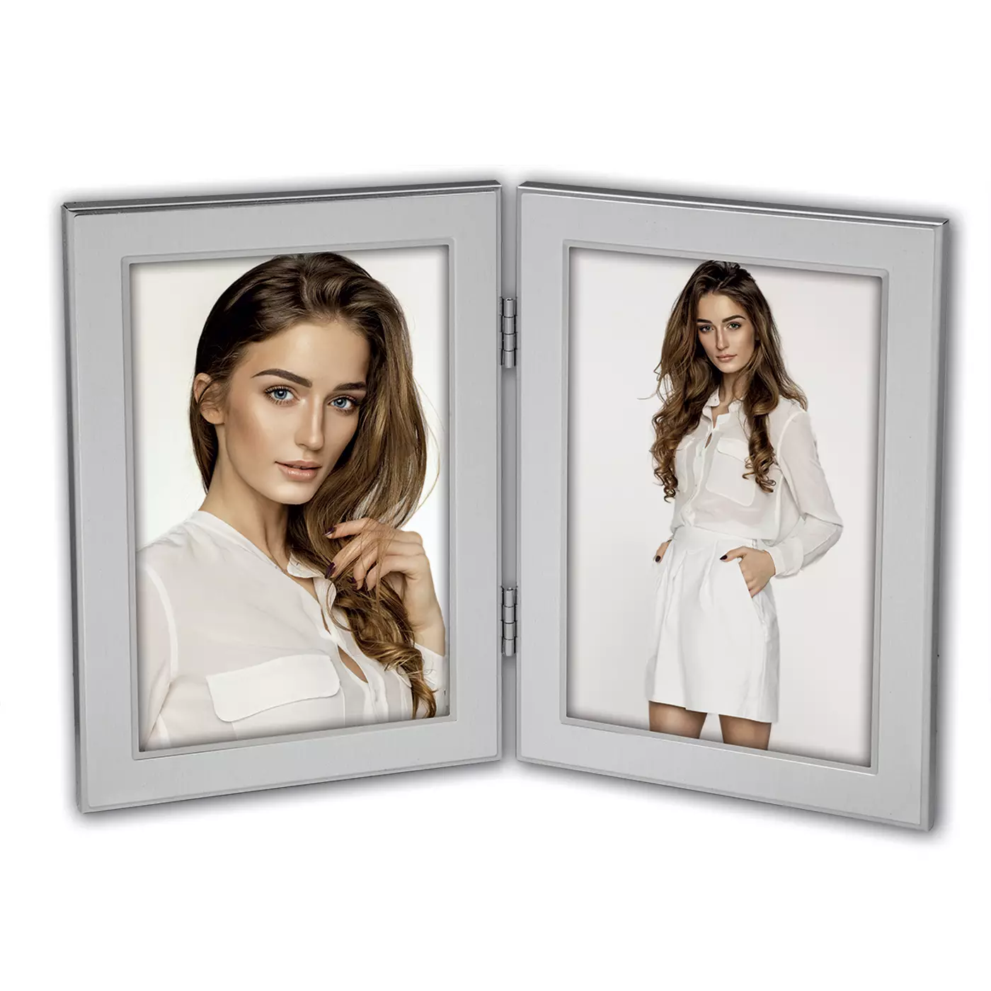 Olimpia Silver saranakehys 2:lle kuvalle hopeoitu, kiillotettu metallikehys samettitaustalla. Kiiltävä / matta viimeistelyllä. Hieno lahja tai itselle kun haluat jotain yksinkertaisen tyylikästä.... Lue lisää
