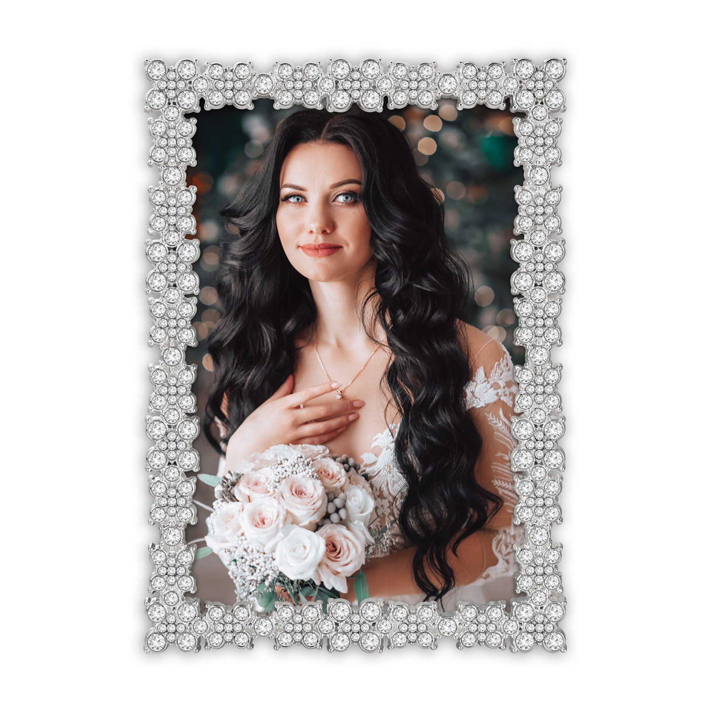 Tyylikäs, lasitimantein koristeltu metallikehys.