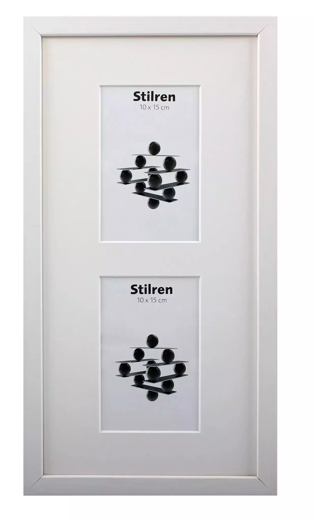 Stilren valkoinen 2x 10x15 (20x40) monikuvakehys, pleksillä - tarjouserä
