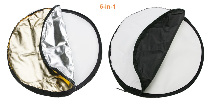 Heijastin on valokuvaajan vakiotyökalu. Pakattuna se vie vähän tilaa, avattuna 5-in-1 hejastimessa on viisi