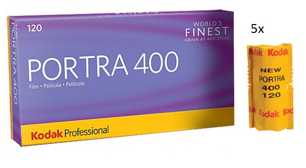 Pakkauksessa 5 kpl 400 ASA 120-rullafilmiä.