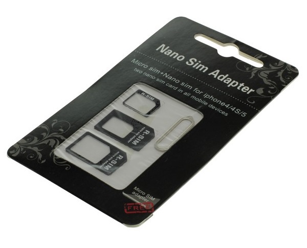 4-osainen SIM-korttisovitesetti: 3-sovitetta sekä metallinen SIM-kortti Pin / neula